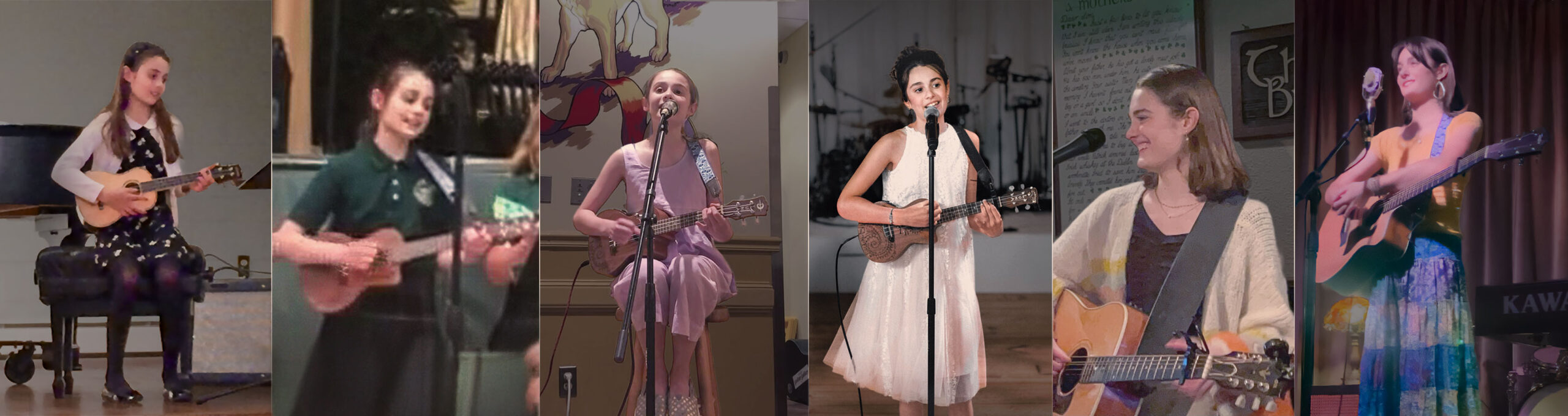 The experience of playing an instrument while singing a song was a revelation that led to her next discovery. She realized that she could now make her own music rather than mimicking other performers and singing others’ songs. Soon she wrote her first song, “Let’s Go to the Moon.” It became a family and friends favorite. After hearing her perform, her elementary school music teacher decided to feature the song in the school’s annual Spring Concert for the school community. He bought enough green ukuleles for the whole school and had Ana Sofia teach her song to fellow students. The school performance was classic. Soon after, Ana Sofia asked to perform in front of others and, at 10, began to do Open Mics and talent shows at local venues and school, including often performing “Let’s Go to the Moon,” which audiences loved.